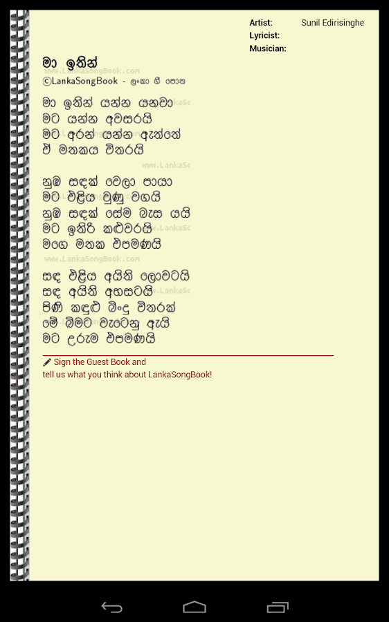 Download Sindu Potha Sinhala Sri Lankan Songs Lyrics Book Free For Android Sindu Potha Sinhala Sri Lankan Songs Lyrics Book Apk Download Steprimo Com